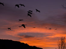 CRANES APPROACHING AT DAWN