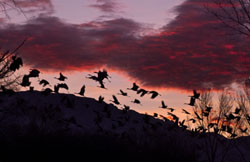 CRANES APPROACHING AT DAWN II