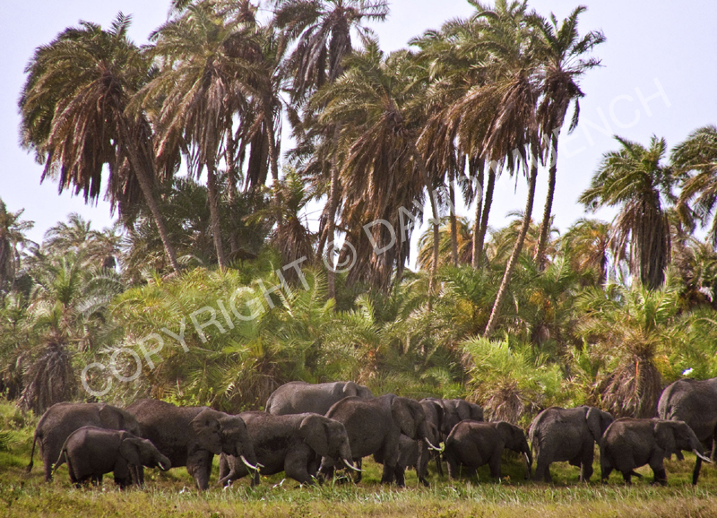 ELEPHANTS IN PALM GROVE