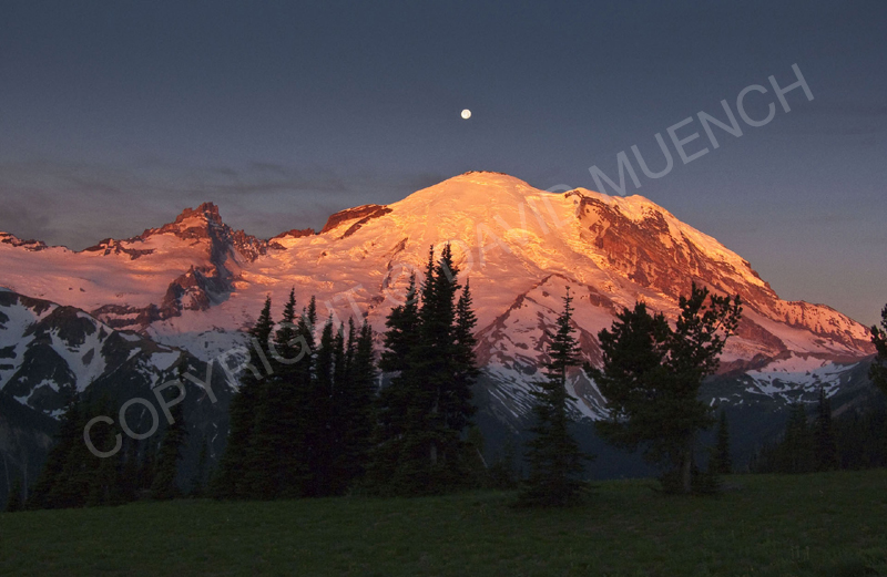 MT. RAINIER SUMMIT AND MOON